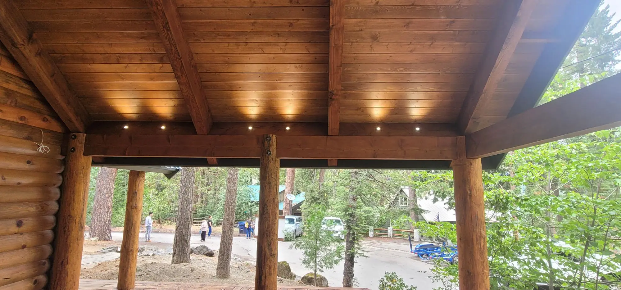 This project was a complete interior and exterior remodel converting an outdated cabin into a warm, rustic log cabin design with a cozy, inviting atmosphere throughout. The cabin showcases a thoughtfully designed layout that makes excellent use of the limited space, blending comfort with functionality.